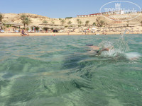 Отель находится на высоте. К морю есть 2 спуска. Один по лестницам, другой - на маленькой машинке, без проблем. Море шикарное. С маленькими детьми - просто рай. Песок, у берега мелко на большом расстоянии, вода теплая. Анимация работает на пляже. есть бесплатные тренажеры.