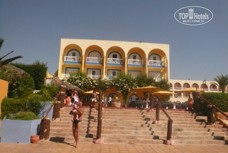 Приехали мы в 7,00. Нас покормили. И сказали до 10,00 гуляйте. Мы были к этому готовы. Т.к. в любых отелях рассчетный час 12-13. Сумки оставили на рессепшене, переоделись и на море. В 10,00 вернулись, нам попытались попудрить мозги, что мол надо было или раньше или ждите 14.00. Ну это же специфика этих стран)))))) Я мило встала у стойки, теребя в руках 10 баксов. Сразу не стала в документы вкладывать. Так как знала, что номерной фонд примерно одинаковый, а зачем платить лишнее. Мы заселялись вчетвером, нам дали номер на цокольном этаже, одна большая кровать, и двух ярусная для детей. Ну спать вместе с подругой нам не хотелось, да и цоколь нас не устраивал. Вернулись, сказали что дети бояться спать на верху. Там есть какой то злобный старший, который помохал руками, мол ничего не знаю, вселяйтесь. Улыбаясь и теребя заветную купюру, через 10 минут я получила номер на 4-ре взрослые персоны, на 2-м этаже.Оформление номера прикольное, но пару пятен было на стене, ну и ладно, все вещи поместили в шкаф и на стойку на которой стоял телевизор ( к вопросу об отсутствии прикроватных тумбочек) Сантехника конечно наши 80-е, но все работало. Солоноватая вода из под крана, прикольно, где вы еще такое увидите. Полотенца правда серые, но пару раз белые тоже попадались )))))