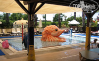 Сам отель маленький, свободного пространства нет, всё очень плотно. Вроде есть всё, но как-то . Есть чахленький мини-клуб с очень бедной крытой детской площадкой с боку на втором этаже, были там один раз и не долго, больше дочка туда подняться не захотела ни разу. Есть вроде нормальный детский бассейн с навесом, но парой там очень тесновато, да и горка только одна. Есть водные горки, стандартные - нормальные, претензий нет. Купаличный бассейн один неглубокий, грязноватый, тесноватый. Проплыть хоть немного и ни в кого не врезаться сложно. Есть платный теннисный корт и бесплатный мини-гольф (клюшки и мячик можно взять на стойке регистрации), сами поля перед отелем справа. Есть фонтан с подсветкой. А садом они называют несколько курилок между корпусами на 1 этаже с бассейничком-речушкой, в которой по идее должны быть фонтанчики, но они не работали ни разу. Променада возле отеля нет. Прогуляться негде, если только подняться в гору и сходить на местный черкизон (рынок, кстати, большой, но ходить туда не очень-то удобно)