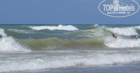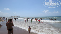 Море-Пляж. Море рядышком, через речку по мостику. Кстати про мостики: На территории их ещё три. Выход-вход из отеля к морю один и постоянно ходишь по этим мостикам. В первые два дня прикольно,. а под конец пребывания мне они очень надоели. Про пляж: песок, хорошие широкие тенты (по мне так гораздо лучше зонтиков), отличные лежаки (без зашарканных матрасов). Первые несколько рядов заняты круглосуточно, а в середине и дальше всегда полно свободных лежаков. Пляж нормально убирают, столики протирают, лежаки стряхивают, песок ровняют. Вечером пляж подсвечивается. Море. Дно песчаное, без камней и водорослей. Заход не идеален есть небольшая полоска мелких камушков, которая меняется (шире, уже, то почти пропадает) в зависимости от волн. Моя мелкая так и не привыкла, приходилось переносить. Сама вода мутная (ничего не поделаешь: песок). Народу в море много и не только с нашего отеля. Видел людей и без браслетов, и с браслетами других отелей. Постоянно приходится протискиваться через толпу, стоящую вдоль берега по-грудь в воде. Такое у нас как-то в Египте было, когда заехала куча арабов из Каира не умеющих плавать. Да, турки в отеле есть и по-моему не мало, но купающихся в одежде немного.
