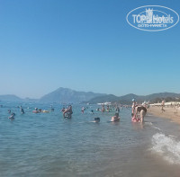 Пляж нормальный , лежаков на нас троих нам всегда хватало, море прелесть а запах! и прозрачное, за весь отпуск только два раза поднималась волна и соответственно прибивало мусор к берегу но это совсем не критично.