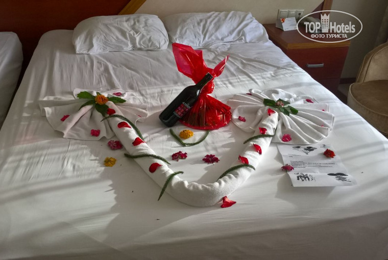 Отдыхали семьёй, сыну 13 лет очень понравилось. Прилетели 10 августа турецкими авиалиниями, без задержек. Размещение оперативное, встретили с улыбкой, все рассказали и сразу в номер. Номер свободный, аккуратный, мы брали с видом на море(((( спасибо предыдущим отзывам, прочитав, выбрали именно с видом на море. Это наверно самые хорошие номера, не на соседние отели. Доброжелательный персонал - это большое преимущество данного отеля. Особенно стараются официанты. Питание нас устроило в полной мере. А море это сказка, тёплое, чистое. Такое удовольствие!!! Спасибо за презент, было день рождение, фрукты, вино, украшение в номере. Очень порадовало. В общем все отлично!