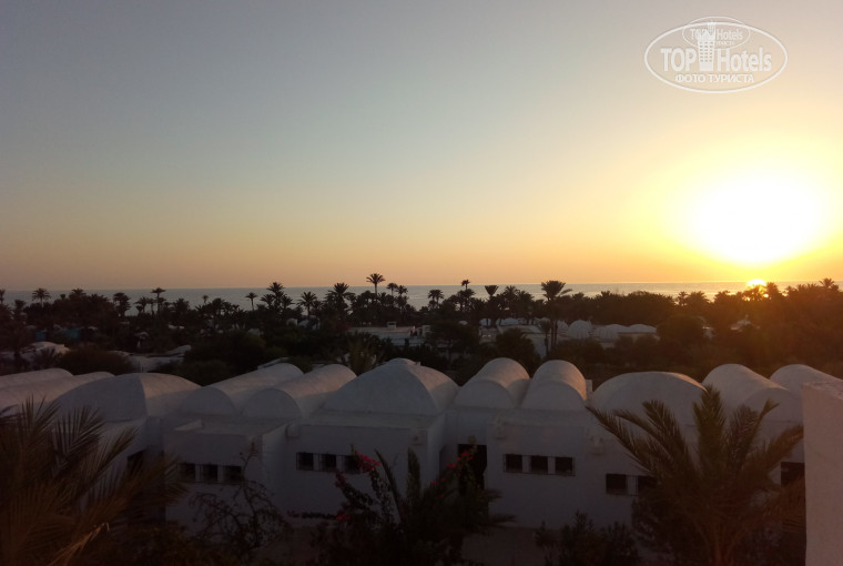 Ехали с острова Джерба около часа. Почти весь огромный автобус кроме 5 человек высадился десантом в данный отель. Сонные работники отеля нацепили браслеты и мы сами-ибо около 30 человек невозможно одновременно проводить до номеров- да и русские люди ждать не любят-найдем сами- пошли в свои номера. Как я и думала после прочтения отзывов нам попался номер на самой последней от моря линии - 923. Потом я даже была счастлива этому, смотрите фото, любовалась рассветом и закатом и морем. Плюс шума не было от анимации, я к ней равнодушна. Да и в ресторан ходить мы очень быстро нашли краткий путь- буквально 3 минуты.Тараканов и муравьев не было в номере. на раковине было 2 кусочка мыла. Шампуня, геля, фена нет.. Об этом знала, ибо не предусмотрено это в этом отеле. Поэтому отнеслась нормально и не удивилась. все купили местное, благо обожаю их косметику. Холодильника и тв тоже. Тв можно попросить на ресепшн. но он нам не нафик на отдыхе не нужен. Убирают номера нормально вполне. Разместившись - сразу пошли на завтрак. в первый день как то показалось скудновато. Яичница, яйца -почему то самим варить, блины, молочное нечто. Горячих сосисок утром к которым мы привыкли в другом отеле нет. От слова совсем. Но! я в восторге от блинчиков, очень колоритный дяденька их пек и на вкус- мое. Очень вкусное к ним варенье- инжировое, абрикосовое, мед. Оч вкусный йогурт который не можно налить сколько хочешь. Сыр творожный или творог , чтото типа мусса, оч вкусно. Разок взяла свежевыжатый апельсиновый сок - 4динара за стакан. Воду в бутылках можно брать с 10 часов в барах. Один раз наколовшись, с вечера всегда брала с собой парочку минералочки на утро на пляж. Вода вкусная как я люблю, не соленая.Булки и и печеньки на завтрак мне показались суховаты. Единственный вид булок-с шоколадом брала....сыр, колбаса какието резиновые, я их не смогла есть, хотя мужу нравились. масло не брала, не знаю. Есть сухие завтраки, еще и пончики, но к ним я равнодушна.Каждый день одно и то же, но голодными не были. Не очень хорошо моют посуду, приборы, Последние зачастую не найдешь если чуть позже прийти и твои грязные унесет официант. Очень мы жалели, что не купили в Москве свои стаканы. Ибо местные ну оч мелкие. Про пластиковые, опять же они мелкие...но с др стороны - одноразовые и Есть) Очень напрягали люди набиравшие вино в обед-ужин в бутылки. Реально создавали очередь, а потом эти бутылки везде валялись...вообще я так посмотрела...Люди в большинстве своем в этом отеле и создавали такое отношение к себе персонала отеля и остальные проблемы типа очередей. Ресторан штурмовался и как чумовые влетали...Блин дома наверное голодали бедные....Обязательно находились те, кто заходил и набирал мимо очереди с дурогой стороны. За детьми наверное вообще никто не следил, носились так, что чуть не сбивали с ног. И вообще почему то приехав в отель люди считаю персонал отеля не людьми, а мусором, который им должен. Улыбнуться и спокойно попросить чтото не судьба, обязательно надо хамить и показывать себя с не с лучшей стороны. Не забывайте улыбаться и быть вежливыми, увидите, как по-другому к Вам будут относится. Отравления ни разу не было. Фрукты были в виде арбузов и дынь. Последнюю попробовала и не стала есть. Не сладкая попалась. Есть лавка за территорией отеля, там мы купили вкуснейшие персики и инжир. за все 7 динар отдали..Вообще