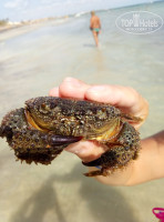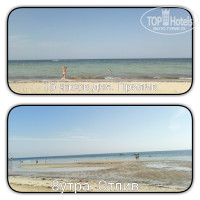Честно говоря после моря в г. Махдия оно мне показалось ну никаким. Заходишь и идешь.....долго...а глубины нет....Справа от пляжа камни....там прикольно можно крабов половить. Но и ноги напороть....аккуратнее. Купаться лучше в районе пирса чуть вглубь от него. Утром меня убивали отливы. Те итак мелкое море еще мелело метром на 5-7 от берега. Потом после обеда правда приливало, но могло и принести водорослей...Которые оооочень плохо убирались.