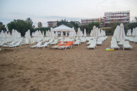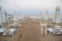 Вода первую неделю была достаточно чистой, дней через 8 прибой начал выкидывать на пляж морскую траву, окурки,пакеты, стаканчики - очень много мусора по утрам находилось на пляжных столиках и песке. Уборку травы с пляжа видел один раз, уборку на столиках под зонтами и на территории пляжа была почти ежедневно.