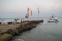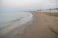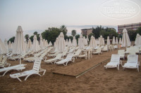 Пляж очень понравился, хоть и не такой широкий, как указано в описании отеля. Ширина от шезлонгов до воды метров 15, а длина (доступная для купания, ибо рядом находится прокат водномоторных развлечений и каменистый пирс) не больше 70 метров. Вход в воду песчаный, но на глубине имеются камни (брали для такого случая коралки, но не понадобились), кто-то из отдыхающих получил травмы ног. В основном все купались на пляже соседнего отеля (слева за прокатом) - там и дно пологое и камней совсем нет. Места на шезлонгах хватало, так как просыпался очень рано и в 6:20 шёл на пляж. После 10 утра свободными оставались только лежаки и зонтики дальше от воды. Дня за 3 до отъезда появилось объявление о запрете резервирования шезлонгов, а то по старой русской традиции много людей оставляли вещи на лежаках и пропадали на весь день в баре или номере, что не очень хорошо для остальных.