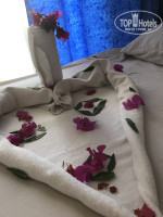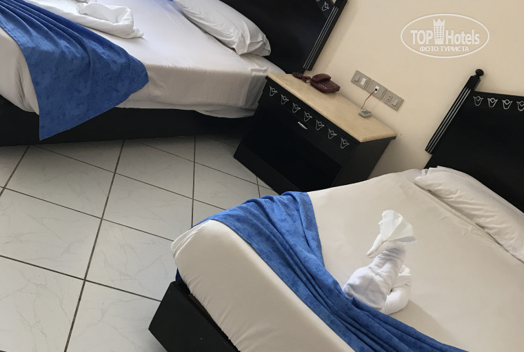 Приехали в отель днем. Заселили в течении часа. За номер пришлось повоевать) Но в итоге,просмотрев пять номеров остановились на одном, ели не ошибаюсь 420. Меня уже все это вывело, и я просто была готова заплатить эти 30$ что бы мне дали номер с видом на море. Но этого делать не пришлось, так как 420 нам презентовали просто так. Номер неплохой, чистый, вид не совсем на море, но жить можно. Балкон, мы очень хотели и получили. Правда, телевизор кубик, но это не критично. за весь отпуск мы его включили один-два раза. Если нужен хороший номер, то просите 110, 220, 330 или 440. За 110 ручаюсь! Номер отличный. Большой, плазма, 2х спальная кровать, вид, просто потрясающий и мини балкон, ну кто курит пойдет на ура!