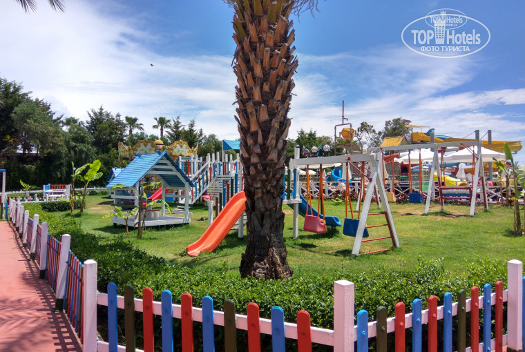 5 лет и 6 лет. Ну, что сказать, если коротко,? Отель держит марку, его обновили, расширили, добавили детскую зону, по территории и номерам все отлично. По заселению, никаких проблем не возникло. Мы бронировали три стандарта в главном корпусе, в ваучере категория номера была указана, как " стандарт отель". Приехали в 9 часов утра, и через 40 минут, после завтрака получили шикарный номер с прямым видом на бассейн и море. На втором этаже в "В" корпусе. Т. К. Мы уже были гостями отеля, нам сделали презент в виде бутылки красного вина и фруктов в номер, а моим подругам в качестве презента был предложен семейный трех- комнатный номер, с джакузи и душевой кабиной, с таким же видом, как у нас (соседние номера и балконы). В нашем корпусе внизу находился лобби бар, и все звуки анимации до 1 часа ночи (дискотека у пляжа) была слышна даже при закрытом балконе. Ребёнок спал крепко, в принципе не напрягало. Корпус "С" жилой внизу- это ресторан, и вечно занятый лифт, спускающийся в галерею ведущую на пляж. Отель с открытия был ориентирован на отдых с детьми, таким он и остался. Детский рай, начиная с мини клуба, мини диско, питания, мороженого целый день, водного городка. Наш малыш ел еду с детского стола, все каши, смеси, те, что взяли с собой повезли обратно. А теперь моё разочарование. Я все понимаю отель детский, но и про взрослых забывать нельзя , они тоже заслуживают качественно го взрослого сервиса!!! Про еду, мясо, рыба, в наличии всегда, много и вкусно. Креветок, мидий, кальмаров, за 12 дней не разу не видели. За , 12 дней три вечера на ужине была клубника и один черешня, при чем в количестве, кто не успел, тот опоздал. А от лобби бара я была в шоке, это даже не скудно - это нищенство. Коктейли делать не умеют, пить не возможно, крепких напитков, кроме турецкого ужасного пойла из одной и той же бутылки, затертой до такой степени, что на этикетке букв не видно. Бармен вечно чем то не доволен, а вот официанты умнички, обслуживали быстро и с улыбкой. Немцы сутками лопают пиво, русские налегают на туркиш Бейлиз. То же и в баре у бассейна вечером. Понравился бар- кондитерская. Анимация мальчишки и девчонки молодцы весёлые, стараются, но их шоу пипец, для детей весело, но для взрослых - школьная постановка. Дискотека ужас, гремящий кислотными турецкими хитами. По ушам бьёт, а вот желания потанцевать не вызывает. Понравились только два вечера с живой музыкой. Итог, приеду в этот отель ещё, с внуком, когда мне будет,, 60-65 лет, когда, кроме еды, моря и комфорта в номере, мне все остальное будет не интересно. Наши дети вирусом коксаки не болели, больных не видела. Всем хорошего отдыха!!!