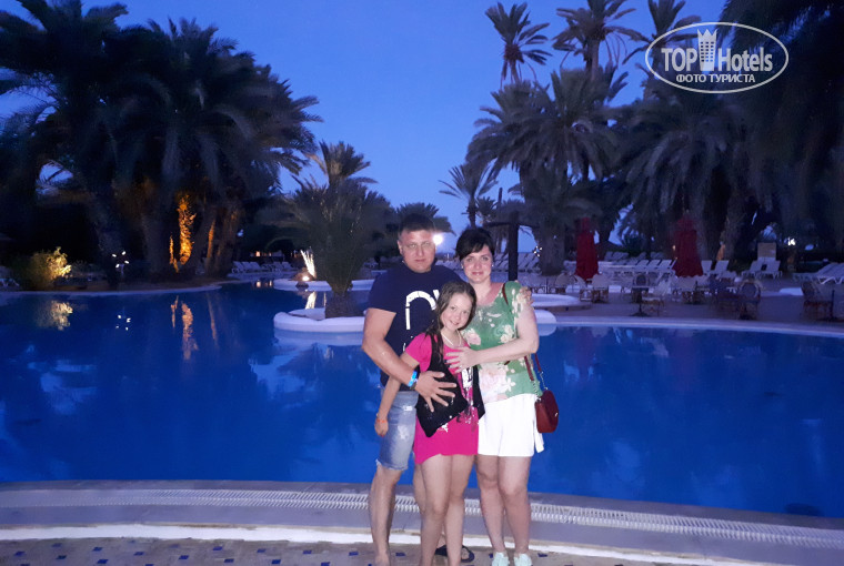 Добрый вечер! Вчера вернулись из Джербы. Отдохнули прекрасно. Отель просто замечательный. Персонал очень дружелюбный и приветливый. Аниматоры - просто молодцы! Позитивные, задорные и очень веселые! Всегда старались подарить нам хорошее настроение. Качество обслуживания также хорошее. Номера чистые, уборка каждый день. Территория отеля - красотища!!! Пальмы, пальмы, пальмы..... Все ухоженно. Приятно гулять и наслаждаться этой сказочной красотой. Про питание, отдельное спасибо - МОЛОДЦЫ!!! Вкусно, разнообразно, старались нас порадовать и удивить кулинарными изысками (и креветки по -королевски, и мидии, а какие на завтраки круассанчики... Пальчики оближешь). К отелю придирок нет. Но как же без ложечки дегтя... Единственное, что нам не понравилось - это вход в море (пирс очень неудобный, всегда очередь и только один спуск). А в остальном - море чистое, теплое и ласковое!!! Очень мы остались довольны отдыхом в этом отеле и получили неизгладимые прекрасные впечатления и массу положительных эмоций!!! Большое спасибо за теплый прием!!!