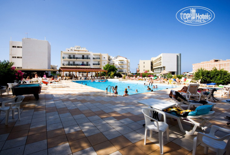 Ближе к концу отпуска начала появляться необходимость погладить одежду. Гладильной комнаты в отеле не оказалось. На рецепшене нам предложили сходить в отель Hersonissos Palace расположенный рядом так как эти отели принадлежат к одной сети отелей. Там же находится и небольшой тренажерный зал, которым тоже можно воспользоваться. Вторым минусом явились русские туристы. Первых 6 дней русских в отеле почти не было и несмотря на некоторую шумность европейской молодежи(особенно много было немцев), отдых был очень аккуратным. А вот с заездом кучи русских туристов бассейн был загажен довольно быстро. Пластиковые стаканчики от напитков выкидывать в мусорное ведро им было лень и они ветром раскатывались по пляжу у бассейна. Само собой в бассейн они тоже залетали и выглядело это всё довольно уныло. Для тех кто жаждет анимации тоже ничего этот отель не предложит. За время нашего пребывания в нём всего один раз прошло выступление коллектива исполнивших какие то национальные танцы.