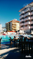 Отдыхаем сейчас в этом отеле. Отель заполнен под завязку, в основном это местная молодежь с детьми и немецкие пенсионеры. Русских примерно четверть. В ресторанах очереди, столики также все заняты. Через часик от начала становится посвободнее. Питание очень неплохое для турецкой 4, мясо присутствует , а так же рыба ввиде скумбрии) Десерты на любителя, сьедобное что то типа наших кексиков, остальное местная приторщина. Очень неудобно за чаем и кофе бежать в другой конец отеля. Зачем так сделано - загадка. Официанты убирают оперативно , алкоголь и напитки за столики приносят всем, кроме русских. Наши сами стоят за ними в бар. Номер достался в блоке Б с видом на заднюю улицу, что было неплохо ввиду отсутствия шума от музыки у бассейна. В первый день в отеле в 5 утра подскочили от завывания, думали, началась бомбежка , но нет - это всего лишь местная мечеть призывает на молитвы. Ближе к концу отдыха привыкли.