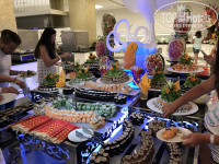 Отдыхали семьей с 26 августа по 6 сентября. Застали праздник Победы и байран курбан, нам очень повезло. На праздник Победы был фейерверк и выносили большой, красивый и вкусный торт-мороженое, была создана праздничная, величественная обстановка, даже отдыхающие, далекие от этого праздника были охвачены данным мероприятием. На байран курбан тоже старались удивить кулинарными изысками, хотя каждый день на ужин, был как праздник, очень все вкусно и разнообразно, рестораны А-ля карт не котировались в данном отеле, так как ни какой ресторан не мог сравниться с выбором в основном ресторане. Единственное минус, что к празднику съехалось очень много местных турков, и как то чувствовалось, что отдыхающих стало больше. Кухня отеля, конечно, это песня, отдыхали в Турции 4 раз 5 звездночных отелях, но этот ублажил наши вкусы, до тортиков и пироженок, которые были очень вкусные и разнообразные часто очередь просто не доходила. И баранина, и котлетки из баранины и говядина на гриле и с овощами, курица всевозможная и рыба, семга, форель и другие варианты. Для деток стояли баночки с пюре, блендер и отваренное мясо курица, овощи, каждый родитель мог выбрать, что ребенок больше предпочитает, отдельная комната для кормления детей, молодцы продумали и это. Номера шикарные, все новое, цивильное, у нас был фемели рум, две комнаты, два телевизора больших на зеркале, холодильник, который постоянно пополнялся, сейф, ну и мелочи гели для душа, кондиционеры. Анимация в течении дня в основном около бассейна, по вечерам шоу программы, довольно интересные, и танцевальные группы выступали и фокусы и в живую девушка пела все любимые хиты, самые смелые танцевали. Вообщем все организованно для хорошего отдыха, для настроения. Территория маленькая, но нас это не напрягало, через дорогу магазинчики, кафе, есть своя прелесть походить прикупиться, погулять по курортным местам, где люди одтыхают, сидят в кафешках. Очень классный магазинчик VIP, будете в тех местах найдите, классные джинцы, футболки. Всем, кто планирует отдохнуть в Азура, очень советую, так как мы получили хороший отдых, и заряд позитива.