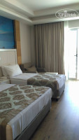 НОМЕР. Номер действительно был похвальный, на 1-ом жилом этаже, то бишь над лобби – на третьем. Окна выходили на сторону дороги, но ее не было слышно, море находилось сбоку. Комната рассчитана на троих - одна двухспальная, одна односпальная кровати, широкое кресло, два стола, ТВ с русскими каналами и разъемом для флешки, холодильник. Понравилась большая душевая, хорошая сантехника. На балконе столик с стульями и сушилка. В целом, номером остались довольны. Пение с мечети слышала пару раз, и то не громко. Насчет уборки хочу отметить, что питьевую воду не добавляли, она в принципе не была нужна, т.к. мы не ленились по необходимости брать ее в лобби-баре. Шампунь/гель для душа также не добавляли, но и тут мы проблемы не нашли – сами попросили горничную принести пару бутылочек шампуня, так она через минуту принесла не две, а штук 10. Полотенца меняли ежедневно, как и постельное белье, каждый вечер приходили в номер и наблюдали различные композиции из покрывала и полотенца – в виде ромбиков, сердечек и с искусствеными розами. Пол мыли вряд ли, но и мы за неделю не засираемся. Хотя жившие напротив, видимо, те еще свиньи – трижды по утрам видели за углом их номера то грязные тарелки, то полные окурок пепельницы. Стыдно, товарищи, стыд-но.