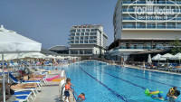 4. Заход в море ужасен, одни камни! Территория пустая, ничего нет! Небольшая зелень возле типа аквапарка. Безопасность аквапарка полный МИНУС!!! Никто не следит как спускаются люди, дети творят что хотят . Один турок сидит на вверху и играет в телефон, а если увидит кого то знакомого, то болтает с ним как круто погуляли на диско! Лежаки многие сломаны, грязные, но когда об этом сказать то их меняют.