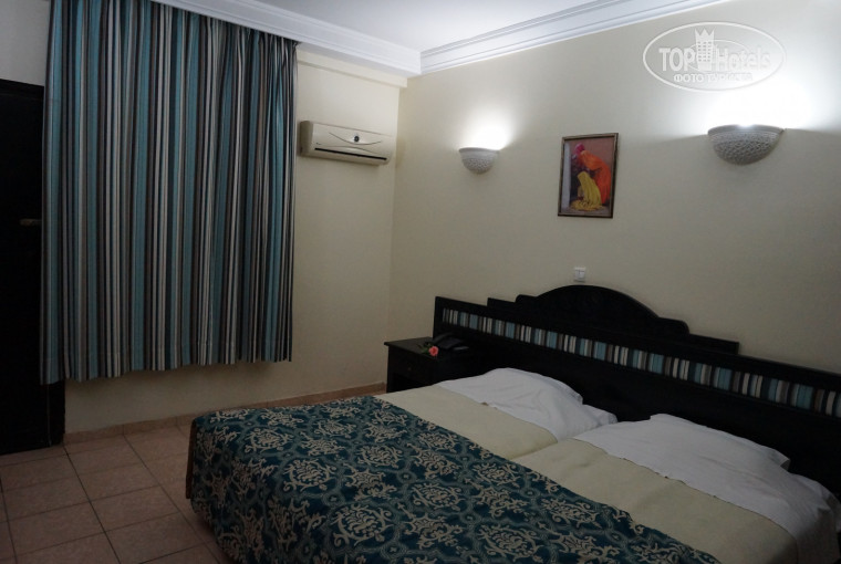 ЭКОНОМ!!! Территория большая, ухоженная. Пляж: собственный, через променад от отеля, небольшой - не всегда есть свободные лежаки. Номер: стандарт - 1й этаж, маленький, чистый, сантехника исправная, фена нет, смена полотенец и уборка каждый день, постельное белье 1 раз в неделю, шумоизоляция "0", кровати раздельные. 2х спальных кроватей в отеле нет совсем - так сказал ГИД. Утюг в отеле не предоставляется. Питание: скромное по ассортименту но вкусно. Завтраки с 6.30 (очень удобно тем кто планирует ездить на экскурсии) до 10. Творог, мармелад (не брикеты), выпечка, салатики - в зале ресторана; блинчики, пончики, омлет (порадовало - жарят персонально, из свежих яиц) - на террасе, чуть позже с 7.30. Обед с 12-14.30. Ужин 18.30-21.30. Салаты (рекомендую мароканский рыбный салатик с рисом), гарниры, десерты, фрукты - в помещении ресторана; мясо, птица, рыба - на террасе. Мароканский Таджин каждый вечер))). Фрукты 1 вид за вечер (были дыни, арбузы, сливы, виноград). Десерты "так себе", понравился только традиционный мароканский манник. Порадовало - у нас в день прилета была задержка рейса, на ужин опаздывали, но всех накормили. Огорчило - нет услуги замены ужина на обед. Доплата за номер с видом на океан - 5 евро в день. Сейф 25 дихрам в день. Полотенца под залог - 100 дихрам. Продление номера при наличии свободных номеров 150 дихрам (без питания). Спорт-зал пллатно. теннисный корт - бесплатно. Чаевые гоничным 5-10 дирхамов - на полотенце (так посоветовал ГИД). На постели оставляли - не взяли. 1 раз поблагодарили горничную нашим шоколадом "Вдохновенье"- не отказалась))). Воду в отель приносили без проблем.