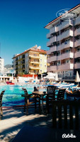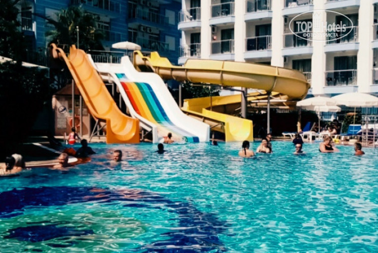 Отель забит под завязку, что выражается в очередях в столовке и занятым столикам. Лежаки у бассейна так же заняты с раннего утра. Процентов 70 отдыхающих на мой глазок- немцы. Курсируют между баром и бассейном. Курят со всех сторон. С ребенком старались быстренько поесть и уйти за территорию. Питание хорошее на мой взгляд, была вкусная рыба и разное мясо. Жарили на гриле. Фрукты - арбузы , дыни , яблоки , сливы, виноград, персики. Напитки за стол официанты приносили только немцам и туркам. Непонятно почему за ужином и обедом за горячими напитками нужно было ходить в другой корпус отеля. По мне, очень неудобно. Соков не было. Воду давали в бутылках во 2 половине дня. Кофе утром в капельной кофеварке, приличный. Позже только из автомата. За выносом еды не следят , частенько брала ребенку в номер печеньки и чай.