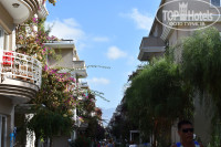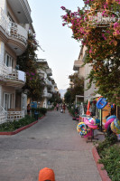 Отель состоит из 18 отдельно стоящих 4-хэтажных домиков. Все выглядит очень мило. Сами домики обвиты красивыми цветами, территория отеля зеленая, много деревьев, цветов и кустарников. Еще есть небольшая детская площадка с качелями.