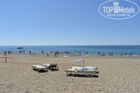 Море было теплое, красивое. Лежаков хватало, хоть и стояли они от моря в отдаленности. В месте лежаков и от них 50 м до моря - песок на 90%, дальше все больше гальки и вход в море - галечный. Метров 15 прибрежной полосы. В остальном, как и писали уже - застывшие плиты лавы, с глубокими желобами и зачастую острыми краями, куда легко соскальзывает нога и ранится. Так что для отдыхающих выбор - плескаться на 15 метрах галечного входа (днем там было 2 человека на 1 квадратный метр) или разбивать ноги о скалы. Я приехал с разбитыми ногами). Территорию у лежаков регулярно и хорошо убирают. Ближе к морю - гораздо менее регулярно. Мусор смывается в море и благодаря свиньям-туристам вечером нередко можно плавать рядом с одноразовыми стаканчиками или другим мусором. Это неприятно, но за это "спасибо" отдыхающим, а не работникам отеля.