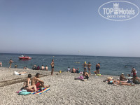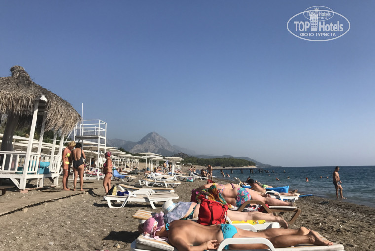 2 раза в день ездит автобус от отеля на платный пляж, платишь на входе 1$ и отдыхаешь там целый день, вход и выход без ограничений, за этот доллар пользуетесь шизлонгами и зонтиками, я ездила туда почти каждый день, т.к. на городском пляже большие камни и много народы почти не ляжешь, шизлонги и зонтики платные. Если ити пешком до платного пляжа 20 минут не быстрым шагом, до городского 10-15.
