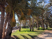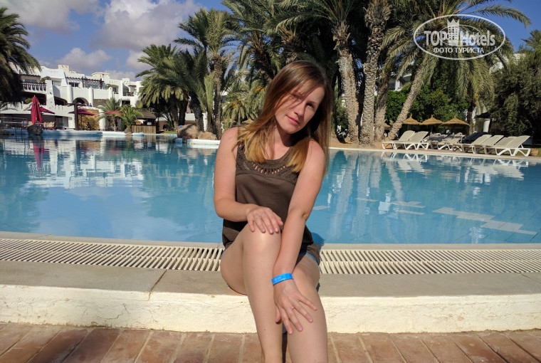 Еще в отеле есть термальный бассейн. Мы один раз залезли, провели там минут 10 и вылезли. Информация о лечебных свойствах бассейна висит рядом на табло. Недалеко от термального бассейна большая зеленая лужайка с гамаками. Вот где действительно релакс зона. Очень красиво. Лежишь себе, смотришь на пальмы и на море. На некоторых фото на территории отеля создается впечатление, что ты не в Тунисе, а минимум в Доминикане. Вообще территория отеля сама по себе заслуживает отдельного внимания - действительно зеленая и ухоженная. Такую даже не во всех пятерках встретишь. И такого количества пальм мы не видели ни в одном посещенном нами отеле. Они везде - возле бассейна, на пляже, большие, со свисающими с них гроздьями фиников.Наслаждение для взора. Возле бассейна мы частенько занимали шезлонги именно под пальмами на травке, а не под зонтиками. На территории также есть мини гольф площадка с интересными видами для фото, да и просто можно по ней прогуляться. Соглашусь со многими отдыхающими, что вечернее освещение на территории оставляет желать лучшего. Ну вот не хотим мы слушать детскую дискотеку, а хотелось бы погулять по территории. Т.к. днем все время на море и особо не до прогулок. Но нет, территория очень слабо освещена. Приходилось постоянно смотреть под ноги чтоб не споткнуться, тут уж не до видов. Да и особо не видно то ничего к сожалению((( Это не критично конечно и я понимаю, что возможно так и задумано. Но может хоть немного освещение усилят в будущем? А вот в лобби баре низкое освещение наоборот понравилось. Особенно вечером. Такое ощущение теплой уютной обстановки. Сидеть одно удовольствие (при условии, что сможете найти свободное местечко). И в лобби баре делают очень вкусный кофе, с пенкой. Если местечка не было мы искали его на открытой терассе (там его не было еще чаще). Причем что в лобби вечером, что на терассе места занимали по большей части французы. Вот кого было слышно и днем, и вечером. Наши по сравнению с ними вели себя скромно. Да их и не было слышно. Даже немцев было не так много как французов. Это я к тому, что некоторые пишут как им было стыдно за наших соотечественников. Не знаю конечно, может это мы так попали. Но после этого раза французов мы невзлюбили очень. Наглая и невоспитанная нация (поставишь так утром за завтраком за столик сумку и очки, придешь с тарелкой, а твои вещи валяются на полу возле стола, за столом уже сидит парочка престарелых французов и им все равно, что столик был занят. Вот кому стыдно должно быть, а не за наших).