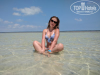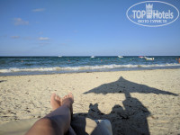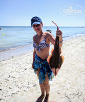 Следующий наш день начался с завтрака. На завтрак пришли часов в 8. Собственно завтрак как завтрак, каким он и должен быть. Не сильно сытный (у вас еще весь день впереди чтоб наесться). Омлет, яичницы, блинчики, маленькие сосиски, всякие хлопья с молоком, кофе и соки (юппи из автомата). Вообщем нам хватало. Никогда не понимала тех, кто жалуется на скудные завтрака, не важно в каких отелях и какой стране. Люди! Вы с самого утра решили что ли налопаться от пуза и валяться тюленчиками у бассейна, потому что после этого у вас сил больше ни на что не хватит? Это не по нам. Поэтому позавтракав мы пошли проверить обстановку на море. А там в это время еще был отлив и глубина примерно по щиколотку, вода прозрачная, но конечно не такая горячая как после обеда. На берегу водоросли, их позже убрали. Касаемо водорослей. Уважаемые! Вы вообще читаете про отель или местность куда отдыхать едите? Это природа. И возможно особенности местности. Мы к водорослям были готовы и поэтому нас они не смутили. В отличии от тех, кто не почитав описание дома на месте же начинают возмущаться по поводу наличия водорослей на пляже. Ну не может трактор ездить каждый час в течении дня и убирать эти водоросли. А если б и ездил то вы бы возмущались, что вот он туда сюда гоняет. На всех не угодишь. Водоросли то и дело и дело к берегу прибивает. Езжайте тогда туда где их нет. Решили мы дождаться прилива на море...у бассейна))). Нашли два шезлонга возле самого глубокого места у бассейна (а самое глубокое место 1,30) и недалеко от бара. В баре у бассейна, да и лобби баре, так же как и в главном ресторане обслуживание замечательное. Напитки наливают в пластиковые стаканчики - оно может и правильно ,т.к. многие родители занявшись своим отдыхом совершенно не следят за детьми, которые с этими стаканами носятся как угорелые. А коснись так разобьют и поранятся, то на отель и персонал в частности от этих яжматерей будет вылито куча нелестных отзывов. Никакой дискриминации (как писали некоторые) нет. Всех обслуживают одинаково. После 11 ч в другом баре возле бассейна начинают печь пиццу. Правда за ней вам придется выстоять очередь. Мы пару раз брали, нам понравилась, каждый раз новые начинки. В бассейне дежурит охранник. Если малыши заплывают в глубокую часть, то отправляет их обратно на мелководье. Дело подошло к обеду и собственно обедать мы и отправились. Ну а после пошли на море. на море тоже есть бар, правда с безалкогольными напитками. К этому времени уже был прилив. Конечно сильно глубоко не стало, но при входе вода уже была по колено примерно. Поплескались. Пошли для галочки поплавать с пирса. Не скажу что прям очереди были на пирсе, все же желающих купаться с берега было больше. При приливе на пирсе для меня лично было даже глубоковато и немного покрутясь на волнах мы вернулись к берегу. В течении дня вдоль берега ходят торговцы, по моему их даже два, они по очереди там ходят. Торгуют в основном платками (5 динар) и парео. Один раз заметила торговца пальмочками. На пляже также охрана, поэтому торговцы соблюдают дистанцию и к рядам лежаков не подходят, показывают издалека, ненавязчиво. Забыла сказать ,что с утра, часов в 10 поберегу откуда то справа идут ребята из рыбного ресторана ,что находится левее от нашего пляжа. Они несут корзину с уловом в ресторан и попутно этот самый улов демонстрируют. У них легко можн