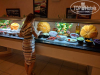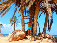 Ну вот и мы наконец отдохнули в этом замечательном отеле. И я собралась с мыслями и решила написать объективный отзыв, который возможно кому то пригодится. Ну и чтобы некоторые не думали, что мой отзыв заказной (особенно те, кому отель по каким то причинам не понравился). Итак, отдыхали мы с 21 августа по 28 августа. Приехали как раз к обеду, получили браслеты и сразу же пошли в ресторан. Ресторан произвел очень интересное впечатление. Зайти в него можно как с главного входа, спустившись вниз по ступенькам или на лифте, или же с улицы. Мы знали, что отель выполнен в берберском стиле. Но читать об этом и видеть своими глазами это разные вещи. Нас такой подход к дизайну впечатлил, интересная задумка (жаль этого не оценили те, кто ранее писал - Фу, отель какой то старинный, темный, как пещера и т.д. Ну как говорится на вкус и цвет. Или же люди просто не удосужились почитать описание отеля. А то и вовсе не поняли, что такое берберский стиль). Несмотря на то, что мы пришли не к самому началу обеду обилие блюд поразило ассортиментом. Выбрали столик, заказали официанту что нам принести из напитков и пошли изучать меню))). Все и сразу захотелось попробовать, но вовремя остановилась. Не буду описывать многообразие, т.к. возможно в каждый заезд у всех будет по разному, скажу лишь, что все очень очень вкусно. А таких вкусных десертов я не пробовала ранее в других отелях. Пообедав мы пошли получать номер - 522. Расположение нам сначало показалось не очень удачным - с видом на детский бассейн, далековато от ресепшена. Но хорошенько подумав, мы все же не стали менять номер ,поскольку уже в этот же день поняли, что расположение отличное - близко к морю (а собственно из за него мы и приехали), тишина (когда шли спать пораньше нам не мешала музыка и шум возле амфитеатра). Да, номерной фонд старенький, но все в рабочем состоянии, да и большего нам и не надо. Мы же приехали отдыхать, а не искать недочеты в мебели. Единственное, у нас был сломан переключатель от кондиционера и его невозможно было отрегулировать. Но это нам не помешало и мы не стали просить чтобы нам его сделали (хотя на следующий день об этой маленькой поломке горничная сама заявила и нам пришли его делать. Вот это сервис должна сказать. Мастер неизвестно сколько прождал под дверью когда мы придем. И при этом встретил нас с улыбкой). Оплатили сейф, депозит за полотенца (их выдают в палаточке возле входа на море) и наконец начали наслаждаться отдыхом.