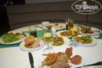 4) ЕДА : АААхха… наверно это самая ЖИВОТРЕПЕЩАЩАЯ тема, которая очень часто беспокоит наших туристов. =)) С едой все налажено. Хотя многие в своих отзывах пишут разности-гадости, но лично мы были очень довольны, завтрак как обычно в отелях очень легкий, но даже при этом никто голодный не уходил есть из чего выбрать на любой вкус. Обед и ужин это вообще праздник живота, мясо рыба , жареные варенные , пареные гриль, ешь , хоть лопни пока все перепробуешь =))) Единственное что мы долго ждали это изыски морепродуктов типа криветочек, кальмарчиков, осминожков…. Вот этого увы….=(( Кальмары были, но на любителя… с овощами ,не так как привыкли мы в нашей кухне, нужно любить подобное..=) А так… ухх… еды было столько, что сравниться данный пир только мог с гостеванием у любимых бабушек, всего и побольше!