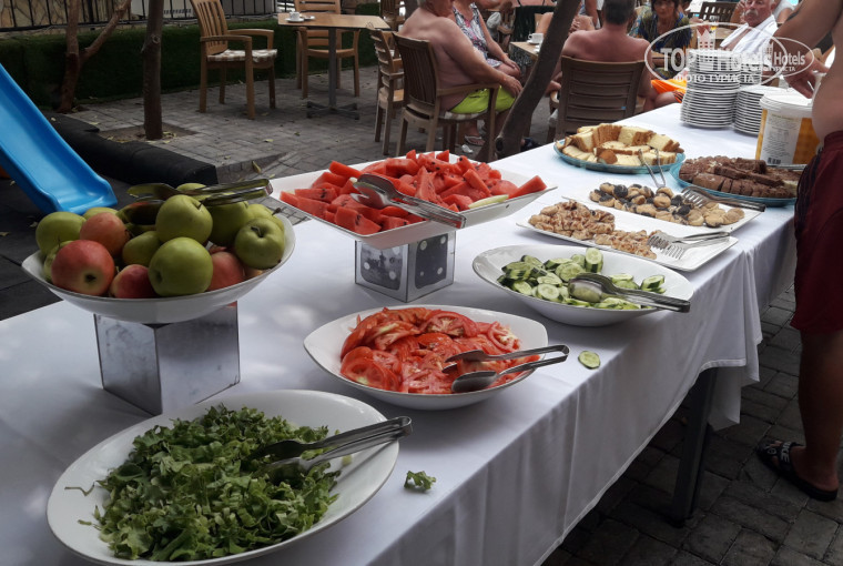 Начну с того, что это был наш первый в жизни отпуск! И нам повезло в первый же раз! Отдыхали с мамой и сыном 6 лет. Приехали в отель ночью, заселили за 5 минут. Питание в отеле на наш взгляд было просто на высшем уровне!!! Всегда все свежее и очень очень вкусное! Обслуживающий персонал работают очень быстро! Часто сами подходят и предлагают напитки! Народу в отеле много, преимущественно немцы. Мы спускались кушать примерно спустя полчаса после начала, всегда находился стол. Еды хватало всем!!! Уж насколько у меня привиредливый ребенок, но он кушал все с удовольствием!!! Десерты вообще отдельный разговор! Мы были 14 дней и я далеко не все попробовала)