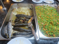 Нам в целом отдых понравился. На меня, дочку и двух внучек предоставили отличный просторный номер на четвертом этаже с видом на море в последнем корпусе. Кровати двухспальная и две односпальных. Вся техника исправно работала. С уборщицей общались на английском: выдала дополнительное покрывало, полотенце, убиралась через день. Все оказалось рядом: столовая, бассейны, хамам, бар, пляж, море. Еда разнообразная, вкусная: курица, дважды форель давали, скумбрию, еще кукую-то рыбу. Навесы и лежаки далековато от моря, поэтому расстилали пляжное полотенце на песочке возле моря и лежаками не пользовались. Очень неплохо и недорого делают массаж в хамаме. За детьми во время массажа присматривала (развлекала) Олеся (Лейсан). В баре вино красное и белое не понравилось, вечерами во время детской дискотеки пил вполне приличный коктейль с вермутом. Развлекали хорошо: и турецкие танцы, и на стекле лежали, огонь глотали. Тишина с 23-00. На шестой день отдыха младшая внучка заболела, поднялась температура до 39 градусов, пришлось отвезти по страховке в поликлинику в Конаклы, там диагностировали ангину, выписали антибиотики и обезболивающее, но через пару дней уже купались в море, благо теплое. В море на буйках и тросах растут какие водоросли или еще что-то, которые при прикосновении оставляют ожог, красные пятна на сутки. Рассмотрел потом их плавая с очками и маской. Из недостатков следует отметить что чартерный рейс из Москвы задержали на 5 часов, правда выдали три бесплатных талона на питание, каждый на 400 рублей. И обратный рейс вместо 22-40 отправился в 6-30 утра, но это уже претензия не к отелю а к туроператору "Интурист". В нашем отеле было существенно лучше чем в соседних, где жаловались на питание, очереди, плохую территорию.