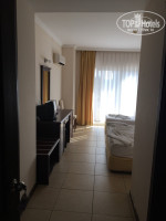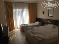 После нас заселили в номер, не в главном здании. Номерок крошечный, плитка отвалилась (никто убирать и не собирается) фото приложу, плафон сломан один, холодильник весь в ржавчине, кондер не работает толком, но самое главное, это волосы, волосы везде....на кровати, на полу, в тумбочках. На полу в таком количестве, что я отказалась ходить босиком. Я сразу расстроилась, бегом побежала на ресепшн, объясняю все женщине, она говорит, что мол щас придут уберут, я успокоилась. Спустя минут 20 пришла, убралась, но ничего не изменилось, волосы как лежали на полу, так и лежал. И тут решили идти по другому пути, при заселении заметили, что в номере не ванна, а душ. Давай открывать описание номеров на Пегасе и вот что узнали, мы платили за вот такой номер (СТАНДАРТ): комната 28 квадратов, ванна, одна двуспальная кровать, одна односпальная, главное здание, остальное все как тут. А мы получили: душевая кабинка, двухспальная кровать, 17-18 квадратов, плюс в здании "annex", оказалось, что нас поселили в номер "гарден рум".