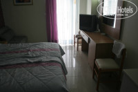Номер небольшой,но уютный.С кухней,есть и посуда,и духовка!тостер,чайник,фен.конечно телевизор.Кондей платно-5 евро/сутки.Маленькая ванна(сидячая),но сантехника в порядке,нигде ничего не текло.Приятная неожиданность-два белых халата и одноразовые тапочки)))