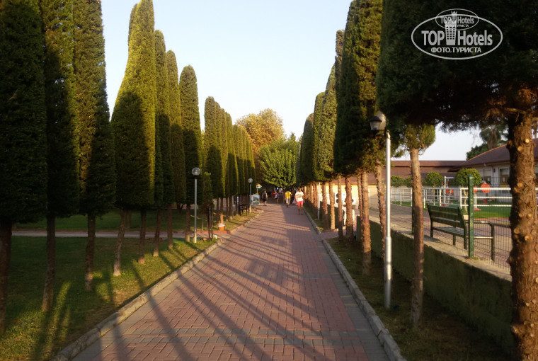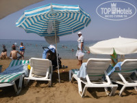 Про пляж и море. Первый раз пришли к морю и появилось ощущение де-жавю, как будто попал в Сочи лет 20 назад народу, как в море так и рядом с ним много и постоянный гул от такого количества присутствующих. К 11 часам искать свободные лежаки пустое занятие, как у моря, так и на территории парка. Что бы доплыть, до буев нужно изначально рассчитать маршрут движения, дабы избежать столкновения с массой отдыхающих находящихся в воде. Про пляж- песок, заход в море пологий,самое то, для детишек. Море теплое. На территории пляжа за 14 дней я наблюдал не убираемые окурки вне урн и пластиковые бутылки. После небольшого волнения на берегу долго лежали бурты водорослей, которые потом собрали в кучи и оставили на берегу. Как и в Сочи по пляжу ходит регулярно дяденька с ведром и предлагает вареную кукурузу за 1 доллар, (погружение в прошлое было бы совсем полным если бы я услышал как предлагают чурчхелу и холодное пиво) и его никто не выгоняет. Хотя охрана есть и периодически просит показать браслет при выходе с пляжа. Наличие кошек на территории отеля наверное норма для всей Турции а вот наличие гуляющих совсем не маленьких собак на территории пляжа это перебор! Вместо навесов на пляже рядом с лежаками установлены зонты, которые не очень глубоко закопаны в песок и механизм регулировки высоты не у всех исправен. Пространство между парными лежаками настолько мало что ежели сосед встанет к тебе спиной и наклонится вся его задняя часть будет висеть над тобой. Однажды, перевернувшись с живота на спину увидел перед собой нелицеприятное зрелище в мокром купальнике. Между раскрытыми на разную высоту и наклоненными в разные стороны зонтами приходиться маневрировать бывает и на полусогнутых дабы добраться до моря. Присутствуют грязные матрасы часть из которых порвана. Среди отдыхающих часто возникают ссоры из за лежаков. Я все время занимаю здесь! Один дядя, подключив свою жену, решил помотать мне нервы, указывая на то, что на ножке лежака на котором я находился, был привязан пластиковый пакет видимо тем самым ,означая то что лежак принадлежит ему, и обвинив меня в присвоении их пляжных полотенец. Администрация отеля, зачем доводите приезжающих к вам людей до такого состояния? Пляж для такого количества отдыхающих очень мал. Пляжный инвентарь оставляет желать лучшего. По этой причине, ежедневный подъем у меня был в 06.00(и это в отпуске!!!) для того что бы занять рядом три лежака ( после 10,00 сделать это нереально) но по факту довольствовались двумя лежаками. На пляж запрещено приносить напитки и еду о чем написано в каждом баре. Хотя все должно быть для удобства отдыхающих.