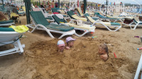 3) Пляж небольшой в длину, много рядов лежаков, есть пирс. Приносит иногда водоросли, но в целом пляжик хороший, песок мелкий, вход пологий.