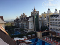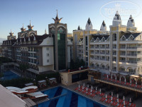 Итак по порядку: летели туркишами в аэропорт Анталии. Вылет без задержек, хорошее горячее питание (назад даже предлагали алкоголь). Туроператор Пегас. Довезли до отеля за 1 час 20 минут. Наш отель был шестым. В отеле были в районе 9.30 утра. На ресепшн по русски не говорят совсем, хорошо, что мы с друзьями приехали практически одновременно. Все переговоры были на них. Отдали документы, попросили заселить рядом и повыше. Нам одели браслеты и отправили на завтрак. Заселили около 14 часов, через номер, на пятом этаже. В номере две кровати, которые можно сдвинуть. Сейф (1,5 евро в сутки). Один русский канал тв (первый). Мебель не потертая, ванная белая, в общем вполне приличный номер. Убирали нормально, как и во всех турецких отелях проблема с мытьем пола. Полотенца и постельное белье меняли вовремя. Пляжные полотенца тоже можно менять(вечером сдаёшь, получаешь карточку, утром получаешь чистые полотенца). Пляж находится в восьми минутах ходьбы нога за ногу) специально засекали, но почти всегда ездили на автобусах или от Lilyumа или соседнего Hane gardenа. Вход очень пологий, песчаный. Камней, которые встречаются возле Cesar's здесь нет, да и вода гораздо теплее, так как подальше от речки. Не понравилось, что лежаки расположены прямо напротив палатки с оборудованием для развлечений на воде, поэтому приходилось купаться или слева или справа от нашего пляжа. Бар на пляже вполне достойный, лепешки, мороженое, вафли, фрукты, обед и напитки, все в наличии. Понравилось, что вино в бутылках, даже на пляже. Из алкоголя предлагали пиво, водку, ракию, виски, джин, возможно ещё что-то. Текилы нет. На вопрос мужа: Warum? бесплатно дали коктейль, который продают за деньги). Питание хорошее. Несколько раз в неделю тематические ужины. Кухня китайская, мексиканская, турецкая и в субботу рыбная ( были мидии креветки, кальмары, тунец). Такого я не во всякой пятерке встречала. Очень понравилась паста с соусом, который готовят на открытом огне( пахнет дымком). На ужин так же есть мороженое. Из фруктов были нектарины, три вида винограда, груши, яблоки, сливы, арбуз, дыня (не очень сладкая). Разнообразная выпечка. Единственно разочаровала турецкая ночь, по сути была та же еда, что и всегда, только по ресторану провезли торт из мороженого с бенгальскими огнями. Была и анимация, но так как у отеля нет ни амфитеатра, ни сцены, а выступления проходят у бара бассейна, из-за сидящих за столиками людьми, почти ничего не видно. Поэтому мы на неё не ходили. Смотрели из номера анимацию соседнего отеля Оранж. Недалёко несколько рынков. Есть аллейки прогуляться возле пляжей. Вай фай только в лобби, или за деньги, цена за неделю 10 евро, но брать не рекомендую, так как почти всегда проблемы с сигналом. В отеле все доброжелательны и персонал и официанты и отдыхающие. Отель рекомендую для спокойного отдыха. Кому нужны тусовки - точно не сюда.