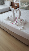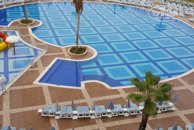 В номерах чисто.Убираются каждый день. Обслуживающий персонал приветливый. Море теплое.Народу много. Лежаков хватает.Анимация вечером в начале детская проходит, затем взрослая. Вчера было лазерное шоу. А днем на пляже пенное шоу. Территория большая, ухоженная.Погода хорошая:30 градусов.Вода теплая. Все отлично!