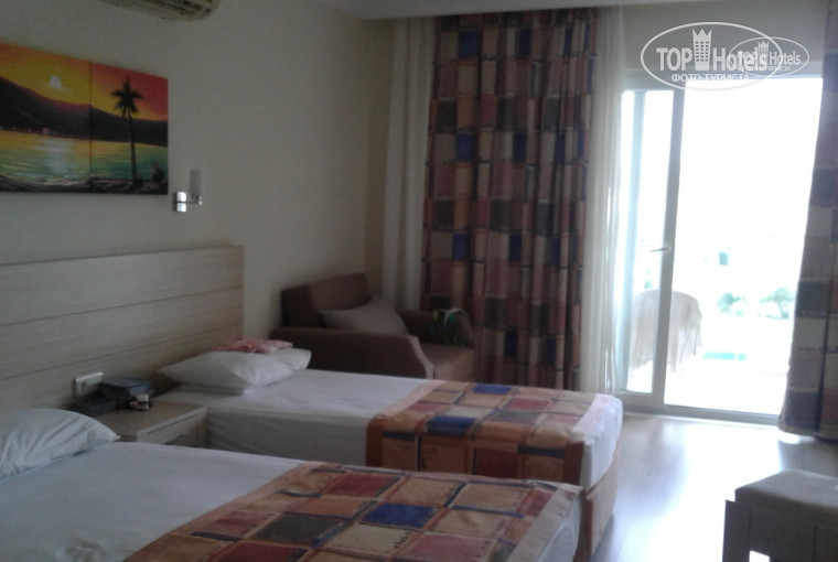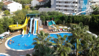 Первый раз поехали отдыхать в 4*. Мы, с приятельницей, искали тихий отель с хорошим обслуживанием и питанием. В этом году это было третье посещение Турции. Долетели прекрасно, так как пользуемся турецкими авиалиниями. Ехали до отеля чуть больше часа. Ресепшн шокировал своей скромностью. Мало этого, нам сказали, что отель переполнен и нас на одну ночь отправят в соседний "Букет". Мы были такие не одни. Никакие доводы не действовали, час пытались вести переговоры через гида, т.к. по-русски никто не говорит, кроме боев. Мы очень расстроились, день был просто потерян. Порадовал лишь шикарный номер 5-ти звездочного отеля, в который нас поселили. В 8.30 утра за нами приехали и заселили в 5-й корпус, на 4-й этаж. Номер нормальный, убирались сносно, было практически тихо. Осмотрелись: территория очень чистая и компактная, хорошо ухоженная. Согласна со всеми авторами предыдущих отзывов, что питание хорошее и разнообразное, достаточно фруктов и сладостей. Вкусное мороженое, но турецкий кофе - по часам. Радовало море, очень теплое, но не всегда чистое (пару раз были выбросы нечистот) Рыбки действительно кусаются. Поразило то, что за зонтами на пляже ежедневно нужно обращаться к обслуживающему персоналу, что крайне неудобно. Пляжные полотенца меняют без проблем. Места на пляже занимают рано, так как перед завтраком очень многие идут плавать. Поддерживаю всех, кто делал замечание по поводу курения. Немцы курят везде: на пляже, в открытых зонах ресторана, на балконах номеров... Интернет работает практически везде, даже на пляже. Все общаются друг с другом, отдыхающие и персонал доброжелательны и вежливы. В общем,отдых был нормальным, хотя я бы сюда не вернулась.