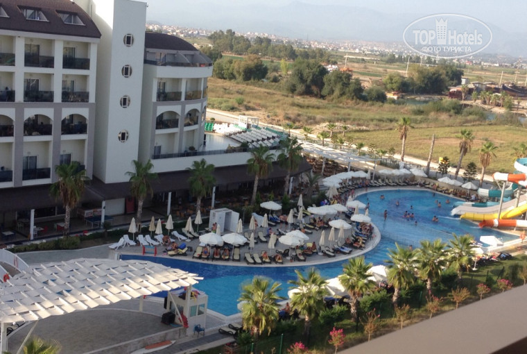 Сам отель вполне достойный, современный, довольно чистый, скромный по территории, но все есть, всего хватает - и горки и бассейны, и магазин, и прогуляться до моря, все есть. Расположение здания конечно отстойное. Три отеля прилепленные друг к другу, два из них вплотную.