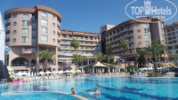 Отдыхал в этом отеле в октябре 2017г., как мне сказали de luxe сняли ещё в 2016г. и теперь этот отель просто resort. Впрочем вся обстановка в этом отеле и говорит что это уже не de luxe. Питание уровня хорошей пятерки, но не de luxe, без изысков. Номер в котором мы проживали нам понравился, сейф платный 2 евро в сутки, бар в день заезда пиво и газированная вода, далее пополняется только питьевой водой в бутылках. Во всём чувствуется экономия и желание от отеля платных услуг, например дают при заезде 10 минут бесплатного массажа, разумеется далее уговаривают на платное продолжение. Территория отеля маленькая и она практически объединена с отелем Лиодикия, куда тоже можно ходить с нашими браслетами, но нельзя там есть, хотя можно пить. Пляж хороший, хотя в октябре уже волны, мы купались. Аниматоры развлекают публику днём и вечером проводят концерты, приглашенных артистов не было, но выступления их нам понравились. В отеле много немцев, которые приезжают не первый раз. В октябре много пенсионеров как из России так и Германии.