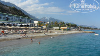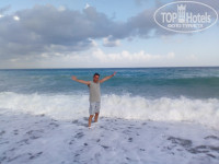 Хочется отметить прекрасное расположение отеля, ВДОЛЬ береговой линии, так что можно считать это даже не первой, а нулевой линией. Собственный пляж- метров 300!!!!!!!, а за ним, пустынный галечный дикий пляж, на фото увидите.