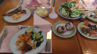 Один раз ходили в ресторан А ля Карт, у меня ребенка заставить покушать это проблема, но суп томатный, рыба и шоколадный мусс ему очень понравились. Я ела Цезарь (нормальный), филе со шпинатом и голубым сыром - вкусно! На десерт фрукты. Официант по моему Мухаммед, очень старался, прям очень-очень)))