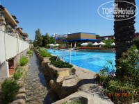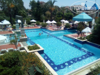 Отдыхали в отеле в конце июля начале августа,спустя время решила написать отзыв,может кому-нибудь пригодится,кто будет рассматривать этот отель для отдыха на следующий год.Приехали в отель утром,нас встретили,предложили оставить вещи на ресепшен,надели браслеты и отправили на завтрак.После чего мы буквально подождали 1,5 часа и нас заселили.Номер у нас был фэмили,находился на первом этаже,с видом на бассейн.сразу скажу,что первый этаж - это не на земле,а над основным рестораном и те,кто пишет,что первый этаж отстой,что постоянно в окна заглядывают садовники,которые стригут траву - полный бред.Наоборот очень удобные номера.
