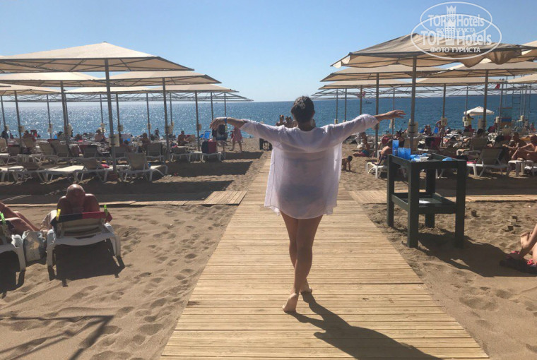 Пляж. Море потрясающее, теплое даже в дождливый день. Пляж песочек, убирают, но люди мусорят. Сама лично собирала за немцами разбросанные стаканы. Эти господа не могут донести до столика специального их. Бычки закапывают в песок. Я тоже курю, но никогда так не делаю. Персонал старается, ходит все убирает и собирает. Даже песочек ровняют грабельками.
