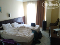 Номер: дверь плотно не запирается, везде зазоры, щели, замок хлипкий. грязные стены с плевками предыдущих туристов, комната большая (номер 423) для 3х человек - 3 кровати. Матрацы, подушки - все в желтых разводах. Постельное белье грязное, застиранное серого цвета, не глаженое, кое где даже дыры. Спать на таком было не приятно. Мебель вся в царапинах, сколах, разводах. Стаканы не то чтобы грязные, их вообще не мыли, я сама их мыла и протирала антибактериальными салфетками. Чистота номера оставляет желать лучшего. Ванная - это отдельная история, такого я не видела нигде. Все в грибке, сантехника зеленая, душ лил везде, кроме как на моющегося. кабина размером 0,5х0,5м. УЖАС! все грязнющее. страшно было касаться стен. полотенца - по 2 на человека, грязные, в черных разводах. я ходила на ресепшн, просила поменять номер, на что ответили, что менять ничего не будут, душ починят, полотенца заменят. Душевую насадку заменили быстро, полотенца меняли с таким ором, что наверно весь отель слышал турецкий ор. мне даже стало неудобно за то, что попросила чистые полотенца. На унитаз страшно было садиться, он не мылся вообще. В доказательство ко всему добавлю фото.