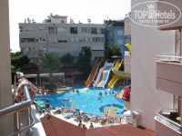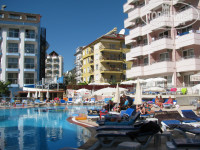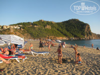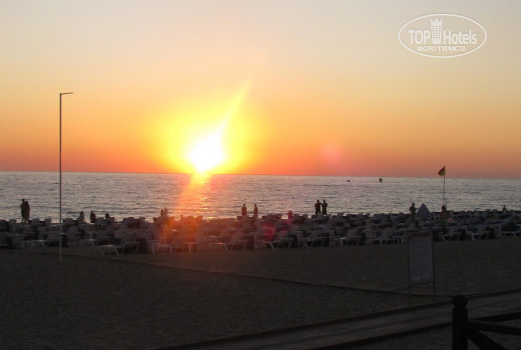 Самое большое достоинство отеля – это его расположение! Через дорогу с односторонним неинтенсивным движением расположен небольшой красивый парк, а далее – пляж Клеопатры. Пляж отеля №4, но лежаки на нём платные. Первый день два лежака и зонтик стоили 18 лир, в последующие – 15 лир. Можно располагаться и на полотенцах у воды или брать только зонтик. Пляж чистый, плит нет, сразу глубоко. Пляжу – «отлично»!