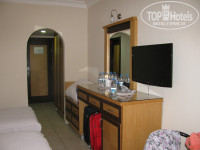 Мы приехали в отель в 23.30. Заселились быстро. Но номер был на первом этаже (по факту 2-м) с видом на свалку сломанных лежаков, очень маленький. На следующий день с утра мы пошли на ресепшн. На плохом английском объяснили проблему. Нам сказали, что сейчас свободных номеров нет, но к 12 часам освободятся несколько номеров, и нас обязательно переселят. Потом и представитель Библио Глобуса попросил нас переселить. В 12 часов нам дали ключи от хорошего номера, в котором нас всё устроило. Спросили, нужно ли заплатить, на что получили отрицательный ответ.