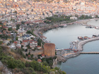 Сами поднимались на фуникулёре в крепость. Брали билеты только в одну сторону. Погуляли по территории крепости, а дальше самостоятельно спустились вниз, сделав остановку в ресторане «Панорама» с красивейшим видом на Красную башню и порт. Там мы заказали настоящий турецкий кофе и ежевичное мороженое. Вкусно!
