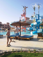 НОМЕР: В номер провёл носильщик, ему тоже презентовала шоколадку, тогда он предложил поменять номер на другой, получше, в номере действительно была чуть получше мебель, но всё равно мебель старовата, как и сам номер.Вид из номера у меня был на бассейн во внутреннем дворике. Скажу сразу, что в мае отдыхала в Турции (Сиде), отель там был 5* ультра, так вот если сравнивать с тем отелем, то в Albatros Aqua Park 4 всё очень печально, начиная от номеров и заканчивая обслуживанием. В номере всё работало исправно. Но нет ни шампуней, ни гелей для душа, только мыло в дозаторах. Душ огорожен только стеной, ни шторки тебе, ни дверцы, пережить это можно, но не очень приятно. Дверь в номер а-ля вчерашний день, которая открывается ключом, а закрывается захлопыванием (утром когда народ идёт на завтрак, а ты хочешь поспать дольше других, у тебя не получится, сплошной грохот дверей, а в отпуске хочется в том числе и отоспаться) К примеру в моём отеле в Турции открывались и закрывались двери посредством карточки. (Уж простите, но буду сравнивать в своём отзыве Albatros Aqua Park 4* с турецким отелем Diamond Premium Hotel & Spa 5*, где я отдыхала в мае, потому что сравнивать, действительно есть с чем). Кондиционер работал исправно, но уж очень шумно, на ночь приходилось выключать. В номере был телевизор плазма с 3-мя русскими каналами, из которых, только 1 шёл без помех, был ещё украинский канал музыкальный. Раза три за отдых в отеле пропадало электричество вечером, но быстро электроснабжение восстанавливали - через 5-15 минут. Уборка в номере нормальная, если оставляла чаевые, то крутили фигурки, но это по-началу, потом их перестали крутить, а я в свою очередь оставлять чаевые, наверно на меня обиделись и один раз даже воду не поставили, но это было лишь один раз, а без лебедей из полотенец можно вполне проживать, главное не они, а чистота, а убирали вроде неплохо в номере, чего не скажешь о холлах и лестницах в корпусе, на полу валялась пыль с грязью целыми комками, согласитесь, это не очень приятно...