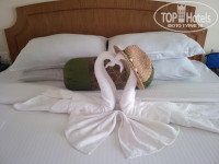 Мы заехали в отель утром, часов в 9. Нам сказали, что заселение будет в 12-30, но номер предоставили раньше, где-то часов в 11. Номер был обычный. без балкона, 205. Номер большой. чистый. В номере- вентилятор и кондиционер. Фена не оказалось, но мы сразу попросили и нам принесли. Пульт от кондиционера не работал, но нам тоже заменили без проблем. В номере убирались ежедневно, меняли полотенца также каждый день, но уборка очень поздно. Иногда приходили часов в 14 с пляжа, номер еще не был убран. Но потом приходили и убирали. Воду давали ежедневно. Один раз пришли, воды не было, мы сказали об этом на ресепшине и нам принесли воду. Номер большой. Мебель, правда, довольно старая, но добротная.