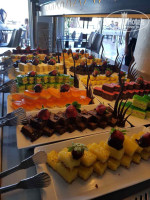 Еда не повторяется, все время было разнообразие. Из десертов много тортиков, пирогов и булочек. Выбор огромный, очередей нет.