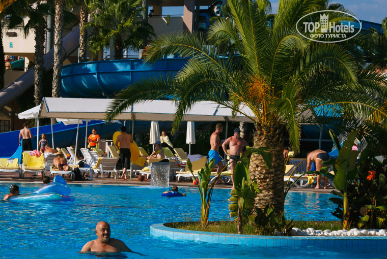 Пишу отзыв только для того, чтобы помочь таким же туристам как и я определиться в отелем. Начну по порядку, приехали в отдел рано, но заселить нас только смогли в 14.00, хотя наплыва туристов было не много. По размещению, в принципе нормальные номера, но всегда есть одно но, то вода плохо сходит, то лейка душа не держится, но это не критично. По питанию все стандартно, морепродуктов почти нет, только изредка жареная рыба, свежевыжатых соток тоже нет. После 2-х дней от соков, которые в автоматах, у ребенка началась аллергия, поэтому пили только воду или чай. В ресторане проблем с местом и отсутствием еду тоже проблем нет. Ресторанов на территории отеля много. Так же нам удалось побывать в ресторанах АляКард, а именно в Мексиканском, Китайском и Рыбном, но нам больше всего понравилось именно в Мексиканском и по самой кухне и по месторасположению. Территория у отеля достаточно большая, поэтому есть где прогуляться. На территории есть Лунапарк, Аквапарк и множество дорожек для прогулки.Так жесть Детский клуб, ребенку там очень нравилось, отдельное спасибо аниматору Джаму, который очень ответственно подходил к своей работе и дети его обожали. Территория отеля регулярно убиралась, поэтому всегда было чисто. В номерах тоже регулярно производили уборку, но разницы с чаевыми и без, мы не заметили, обирали всегда одинаково. Все бы ничего, но нас выселили на сутки раньше, так как наш чартер перенесли, нас об этом вообще никто не уведомил. Представляете в каком мы били шоке, когда нам звонят в 12.00 и говорят почему мы до сих пор не сдали номер, хотя по всем документам выезд у нас завтра, самое неприятное в том, что отель нас мягко говоря наехал, что мы не смогли выехать в 12.00, дал нам 30 минут чтобы мы покинули номер. Понятное дело мы всей семьей просто не успели собраться за это время и в режиме аврала смогли покинуть номер только в 14.00. На что администрация сказала что мы должны им за это еще 43 доллара иначе ОНИ НАС НЕ ВЫПУСТЯТ С ОТЕЛЯ!!!!!!! Это все было на повышенных тонах и им все равно было кто в этом виноват и это было все сказано в присутствии детей!!!!! Наш трансфер задержали на 40 минут пока не решили вопрос с оплатой, так как его просто не выпускали из отеля. Тур оператор у нас был Интурист, наш гид, которого мы видели один раз это Bahadir BEDER, именно он обязан нас был предупредить, посадить в автобус и проводить!!! Но это сказал что это НЕ ЕГО ОБЯЗАННОСТЬ!!! Именно благодаря действиям данного гида, мы чуть не опоздали на самолет, услышали много что "интересного" от администрации отеля!!!! На самом деле, если у вас будет хороший гид, который будет интересоваться вашим размещением, следить за временем вылета и т.д., то отель рекомендую, но на 5* он не дотягивает, скорей всего это хорошая 4*